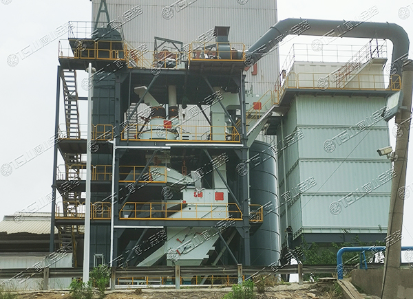 原料經過電子秤進入到皮帶輸送機中,由全封閉的提升機將物料入到五孔碾磨制砂機內進行破碎處理,再由空氣篩對破碎后的物料進行篩分、選粉處理,篩分后的較大物料會返回五孔碾磨制砂機中進行二次破碎,符合要求的砂子則由傳送帶輸送至成品倉中;篩分過程中的粉塵會經粗細粉分離機進入到布袋收塵器內,而其中較大的粗顆粒會在粗細粉分離機的作用下,按需求在成品砂中進行回摻,細粉塵將通過風力進入到布袋收塵器,作為副產品進行使用。